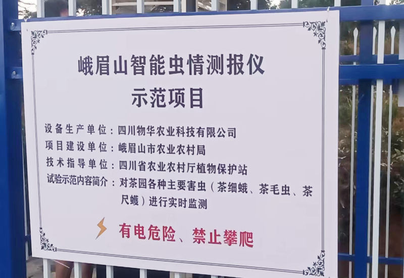 峨眉山智能虫情测报仪示范项目部署智能虫情测报灯,主要用于园区虫情的种类和数量进行监控和预警。