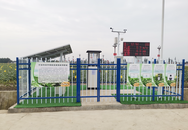 什邡烟草基地项目主要包含虫情测报灯,电子测报仪,土壤墒情检测仪,田间小气候监测站,苗情监测系统等设备组成主要用于烟草的生长情况虫害预警监测。